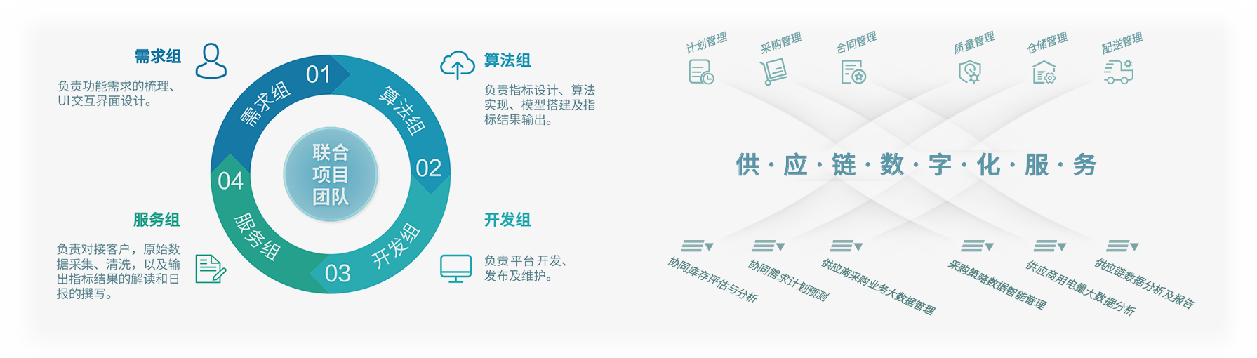 以“業(yè)務(wù)+技術(shù)”的工作模式,派駐數(shù)字化服務(wù)團(tuán)隊(duì)與客戶(hù)開(kāi)展聯(lián)合辦公,通過(guò)提供業(yè)務(wù)診斷、工具開(kāi)發(fā)、數(shù)據(jù)清洗、模型訓(xùn)練等服務(wù),幫助客戶(hù)將物聯(lián)網(wǎng)、人工智能、大數(shù)據(jù)分析等前沿技術(shù)嵌入其核心業(yè)務(wù)流程,助力客戶(hù)企業(yè)以更快速度、更大規(guī)模推動(dòng)供應(yīng)鏈發(fā)展與變革。